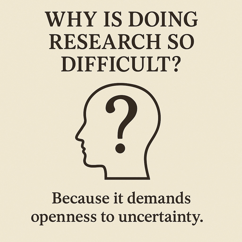 Research, however, demands the opposite. It requires us to hold uncertainty, to remain open to being wrong, and to resist premature closure. This is why research feels so difficult and so unnatural.